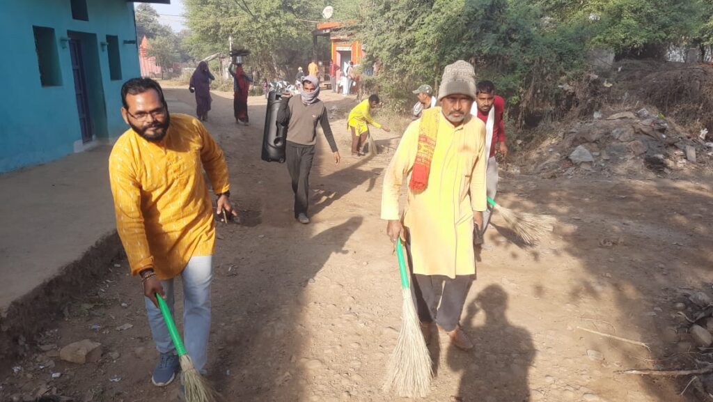 आज ग्राम खमरगौर जिला दमोह में 51 कुंडीय गायत्री महायज्ञ की कलश यात्रा के पूर्व सुबह से ग्राम में स्वच्छता अभियान चलाया गया जिसमें सभी ग्रामीण परिजनों ने अपना सहयोग दिया