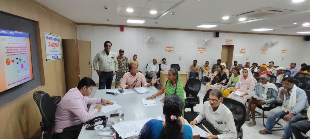 : दमोह.प्रभारी कलेक्टर श्री वर्मा कलेक्टर कार्यालय के कक्ष क्रमांक 10 में जनसुनवाई करते हुए.इस अवसर पर अपर कलेक्टर मीना मसराम सहभागिता निभा रही हैं.