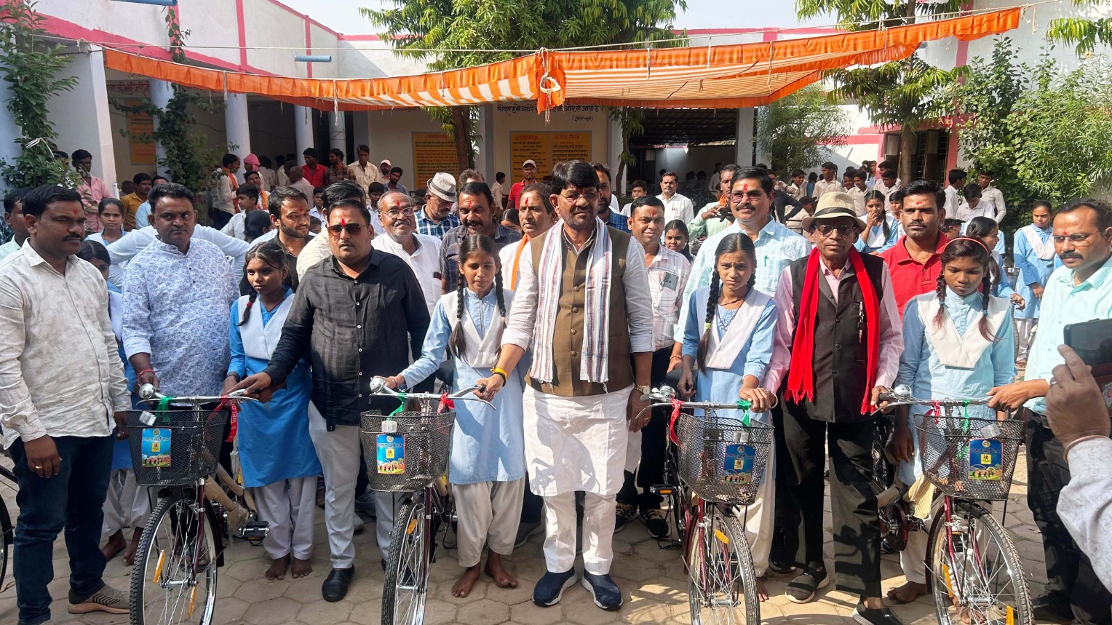: राज्य मंत्री श्री पटेल ने ग्राम खडेरी में छात्र-छात्राओं को की साइकिल वितरित