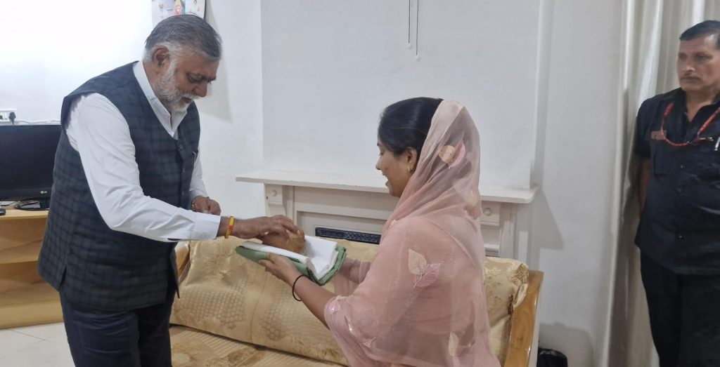 : दमोह. 10000 पौधारोपण करने के बाद मप्र शासन के मंत्री श्री प्रहलाद सिंह पटेल जी सर्किट हाउस पहुंचने के बाद जिला पंचायत की अध्यक्ष श्रीमती रंजीता गौरव पटेल ने मुलाकात की और श्रीफल भेंट किया.