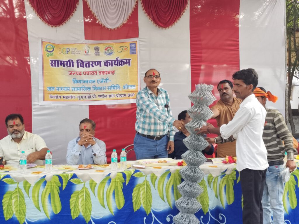 बकस्वाहा। भारत सरकार के पर्यावरण, वन और जलवायु परिवर्तन मंत्रालय एवं संयुक्त राष्ट्र विकास कार्यक्रम (यूएनडीपी) के सहयोग से बकस्वाहा ब्लॉक में आयोजित अंत्योदय वाटिका सामग्री वितरण कार्यक्रम में ग्रामीण क्षेत्रों के विकास और आत्मनिर्भरता को नई दिशा दी गई। कार्यक्रम के दौरान जनपद पंचायत के मुख्य कार्यपालन अधिकारी (सीईओ) श्री भागीरथ तिवारी ने कहा, “हर हितग्राही की प्रगति हमारा उद्देश्य है। इस परियोजना का मुख्य उद्देश्य ग्रामीण हितग्राहियों को आत्मनिर्भर बनाना और उनके विकास को गति देना है। यह वितरण कार्यक्रम उनके जीवन को सशक्त बनाने की दिशा में एक महत्वपूर्ण कदम है।”