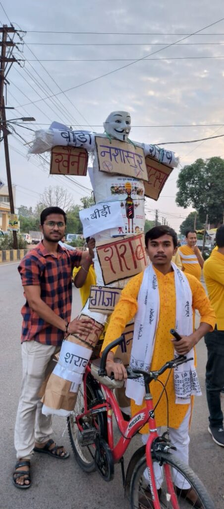 आज विजयादशमी के अवसर *नशा मुक्ति भारत अभियान के अंतर्गत नशा सुर का पुतला दहन*