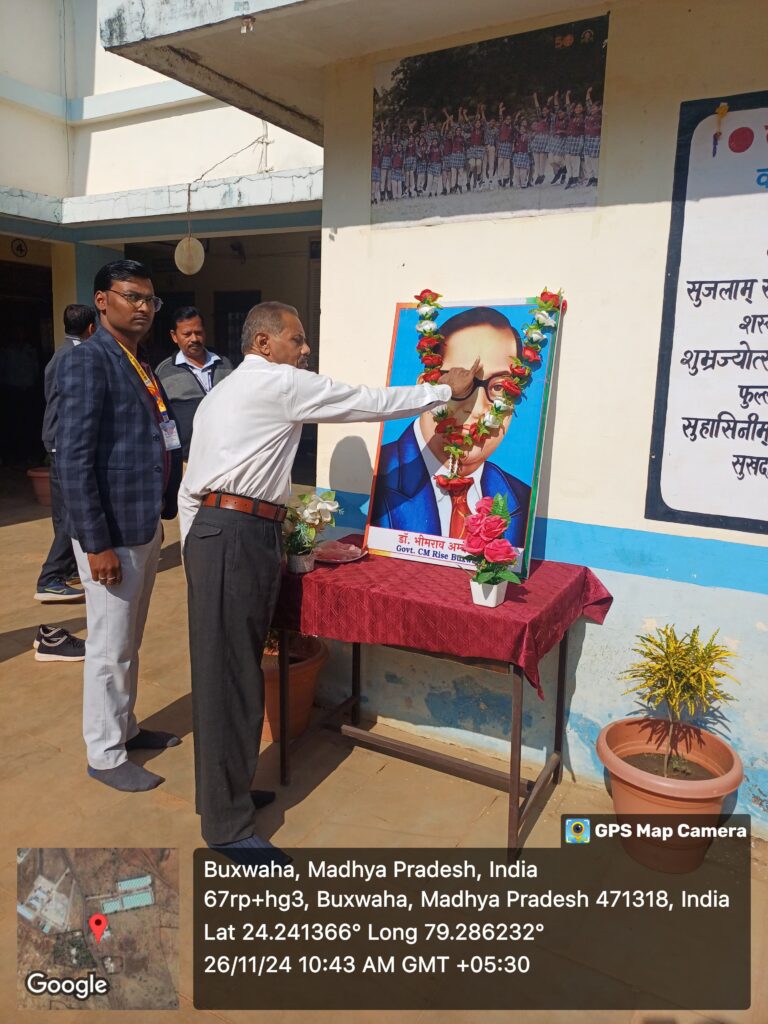 बकस्वाहा। भारत सरकार के निर्देशानुसार संविधान के 75 वर्ष पूर्ण होने के उपलक्ष्य में सीएम राइज विद्यालय बकस्वाहा में संविधान दिवस धूमधाम से मनाया गया। इस अवसर पर 'हमारा संविधान, हमारा स्वाभिमान' अभियान के तहत वर्ष भर चलने वाले आयोजनों का शुभारंभ किया गया। कार्यक्रम की शुरुआत विद्यालय के प्राचार्य आर.के. ताम्रकार द्वारा संविधान निर्माता डॉ. भीमराव अंबेडकर के चित्र पर तिलक एवं माल्यार्पण से हुई। इसके बाद विद्यालय के समस्त शिक्षकों और छात्रों ने बाबा साहब को पुष्प अर्पित कर श्रद्धांजलि दी। संविधान की शपथ और उद्देश्य वाचन