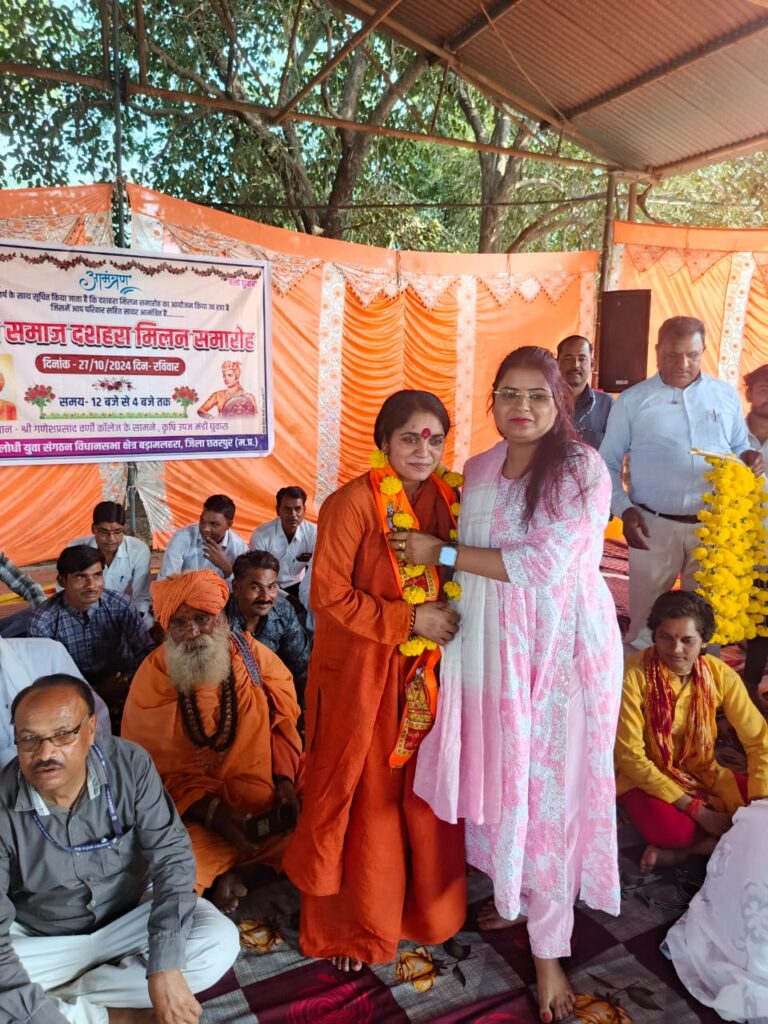 *छतरपुर जिले के घुवारा में लोधी समाज द्वारा रविवार को दशहरा मिलन कार्यक्रम का आयोजन किया गया। कार्यक्रम दोपहर 12:00 बजे से शाम 4:00 बजे तक गल्ला मंडी परिसर में चला, जिसमें क्षेत्रीय विधायक रामसिया भारती विशेष रूप से उपस्थित रहीं।*