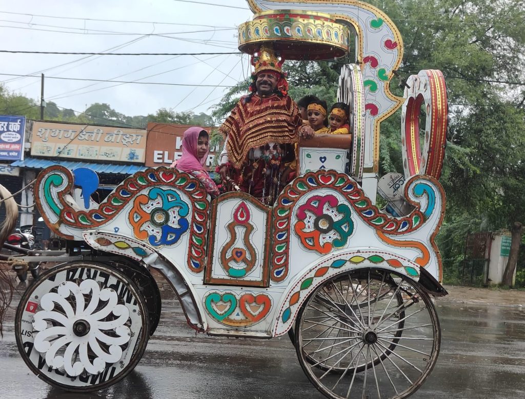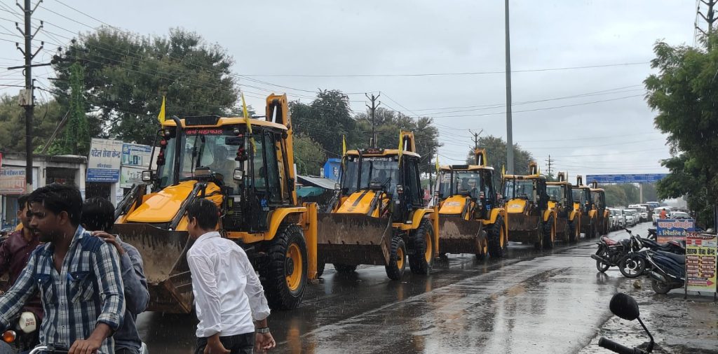 शोभायात्रा में जेसीबी मशीन