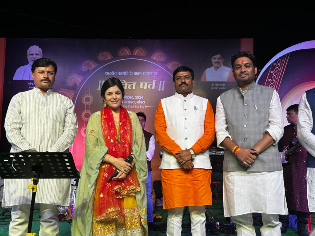 दमोह जिले की जबेरा विधानसभा के विधायक में श्री धर्मेंद्र सिंह लोधी जी राज्यमंत्री (स्वतंत्र प्रभार) मध्यप्रदेश शासन के ग्रह ग्राम नोहटा में शारदीय नवरात्रि की सप्तमी के अवसर पर श्री हनुमान शंकर मंदिर में विराजमान दुर्गा जी प्रांगण में संस्कृतिक कार्यक्रम का आयोजन हुआ जिसमें स्थानीय कलाकारों सहित सुप्रसिद्ध गायिका कविता पौडवाल जी के द्वारा भजनों की प्रस्तुति दी गई।