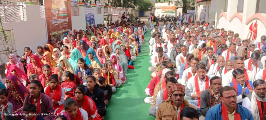 *बटियागढ* परम पूज्य परम हंसयोगीराज श्री शक्तिपुत्र जी महाराज के मार्गदर्शन में वा आशीर्वाद स्वरूप से बटियागढ में हर माह की भांति इस बार भी माह के प्रथम रविवार को जनपद पंचायत कार्यालय में भव्यता पूर्वक संपन्न हुई मासिक महाआरती का आयोजन दोपहर 12 बजें से प्रारंभ किया गया जिसका शुभारंभ सुरेंद्र सिंह द्वारा किया गया मां गुरुवर जी के जयकारे लगाते हुए गुरुवर श्री की आरती व माता भगवती की आरती की वही मंत्रों का उच्चारण करते हुए व तीन-तीन बार शंख ध्वनि की आरती करने के तत्पश्चात नए मां के भक्तों को संगठन के वरिष्ठ अधिकारियों द्वारा गुरुवर श्री जी व संगठन की विचारधारा से अवगत कराया चिंतन मंच संचालन हरिनारायण पटेल द्वारा किया गया जिसमें बताया गया कि बहुत ही सौभाग्य शाली है हम सभी लोग जो 2025 लगते ही नए वर्ष के पावन पर पर ममता मई मां की आरती करने का सौभाग्य प्राप्त हो रहा है तो आगे की कड़ी में भगवती मानव कल्याण संगठन के जिला अध्यक्ष पं राकेश तिवारी द्वारा बताया गया कि हमारे गुरुवर श्री जी द्वारा आज हम सभी को इस परिवर्तन के यंग में सम्मिलित होने का सौभाग्य प्राप्त हो रहा है