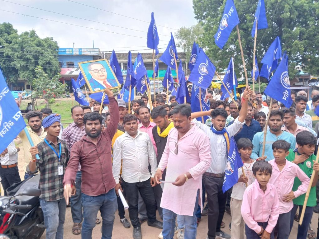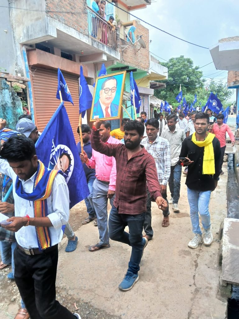 **बक्सवाहा:** बक्सवाहा ब्लॉक के अनुसूचित जाति, जनजाति, अल्पसंख्यक और पिछड़ा वर्ग के लोगों ने आरक्षण में क्रीमी लेयर व्यवस्था लागू करने के विरोध में एक शांतिपूर्ण मार्च निकाला। इस मार्च के दौरान, उन्होंने तहसीलदार बक्सवाहा के माध्यम से महामहिम राष्ट्रपति जी के नाम 27 सूत्री मांगों का ज्ञापन सौंपा।