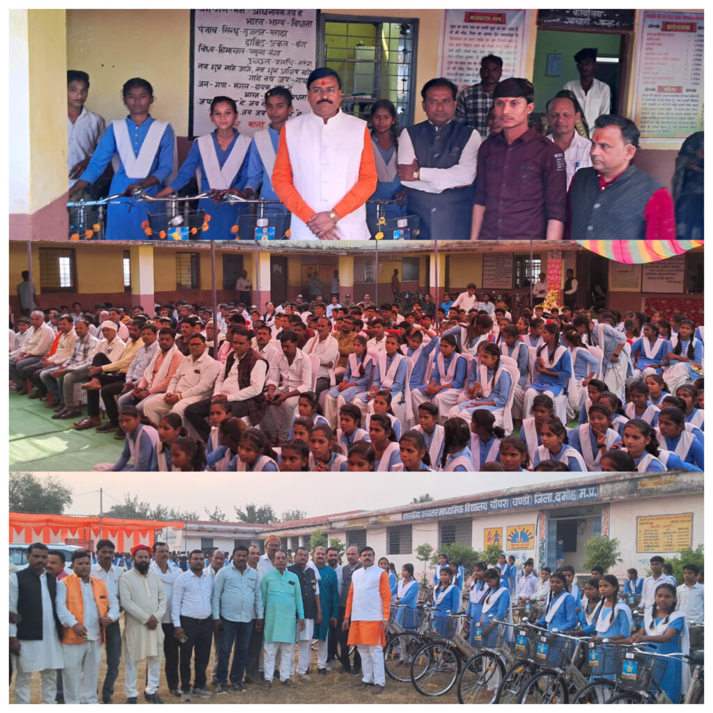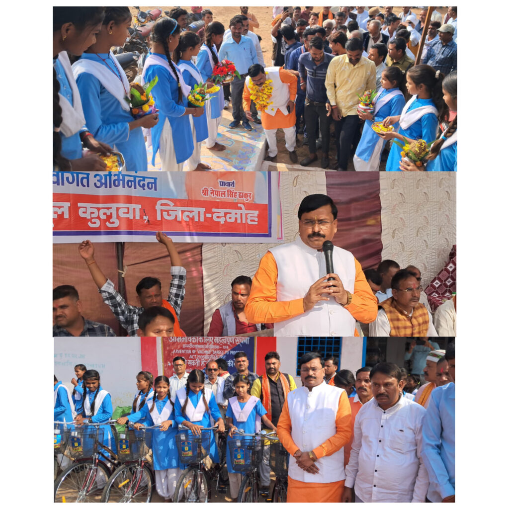 जबेरा विधायक एवं मध्य प्रदेश शासन में राज्य मंत्री स्वतंत्र प्रभार धर्मेंद्र सिंह लोधी आज जनपद जबेरा के होना है शासकीय उच्चतर माध्यमिक विद्यालय नोहटा, हाई स्कूल कुलुवा, शासकीय सीएम राइस उच्चतर माध्यमिक विद्यालय बनवार, शासकीय उच्चतर माध्यमिक विद्यालय बम्होरी,एवं शासकीय उच्चतर माध्यमिक विद्यालय चोपरा पहुंचे जहां छात्र-छात्राओं को साइकिले वितरित की।