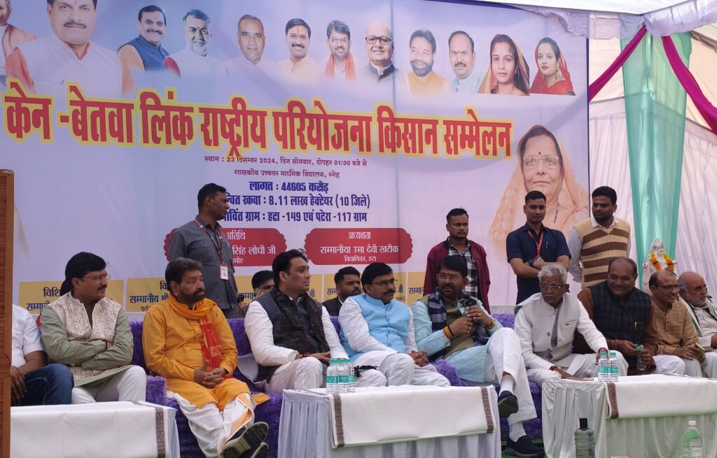 दमोह। हटा के रनेह में आयोजित हुआ केन बेतवा राष्ट्रीय परियोजना किसान सम्मेलन समारोह,बैदिक मंत्रों के बीच केन और बेतवा के पानी का मिलन कराकर केन बेतवा लिंक परियोजना का प्रतीकात्मक शुभारंभ किया गया,