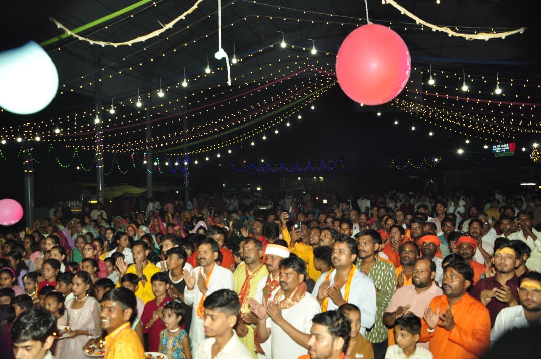 कार्यक्रम की शुरुआत रात 8 बजे 251 दीपकों से हुई महाआरती से की गई। आरती के साथ ही श्रद्धालुओं ने ढोल-नगाड़ों और आतिशबाज़ी के बीच भक्ति की अलख जगाई। इसके बाद गरवा नृत्य की रंगारंग प्रस्तुतियों ने दर्शकों का मन मोह लिया। महिलाएं, युवा और बच्चे झूमते-थिरकते देर रात तक उत्सव का हिस्सा बने रहे।