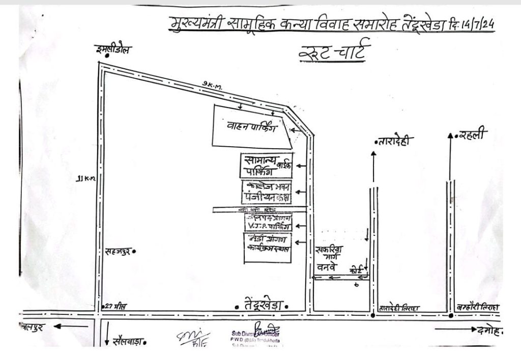 14 जुलाई को तेंदूखेड़ा में आयोजित होने वाले मुख्यमंत्री कन्या विवाह/निकाह योजना अंतर्गत सामूहिक सम्मेलन में यातायात सबंधी व्यवस्थाओं की जानकारी