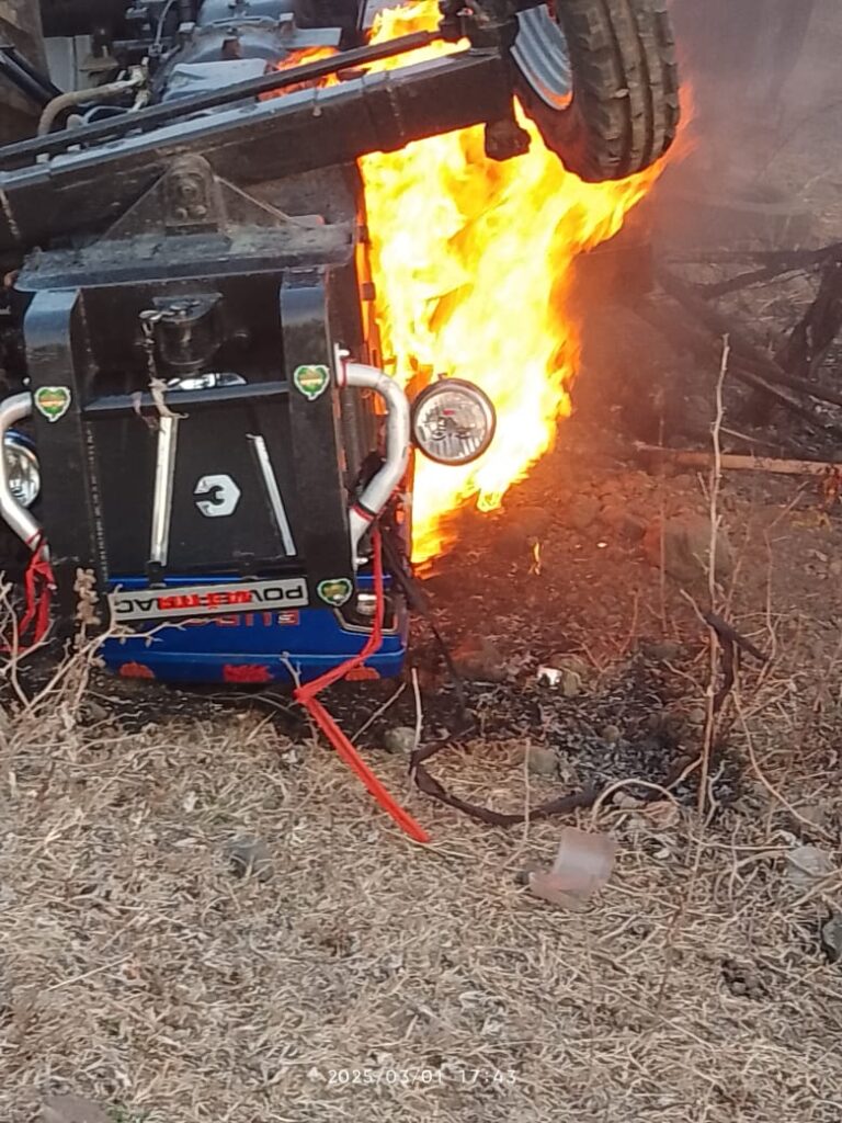 भीषण दुर्घटना में दो लोगों की जिंदा जलने से मौत, ट्रैक्टर और थ्रेसर के पलटने से लगी आग