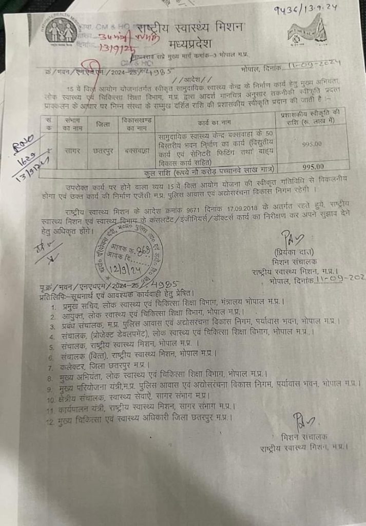 वकस्वाहा विकासखंड में 50 बिस्तरीय सामुदायिक स्वास्थ्य केंद्र की नई बिल्डिंग का निर्माण लगभग दस करोड़ रुपये की लागत से किया जाएगा। इस परियोजना में विद्युत कार्य, सैनिटरी फिटिंग और बाहरी विकास कार्य शामिल हैं, जो नए भवन को आधुनिक बनाने और क्षेत्र के लोगों को बेहतर चिकित्सा सुविधाएं प्रदान करने में सहायक होंगे।