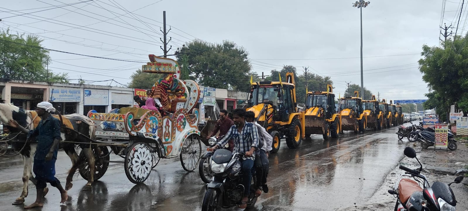 जिसमें विशेष रूप से भव्य स्वरूप के अलावा भारी संख्या में जेसीबी की मौजूदगी देखी जा रही है. पुलिस व्यवस्था सीएसपी अभिषेक तिवारी के नेतृत्व में की जा रही है, जिसमें सिटी कोतवाली दमोह देहात और भी जगह की पुलिस फोर्स मौजूद है।