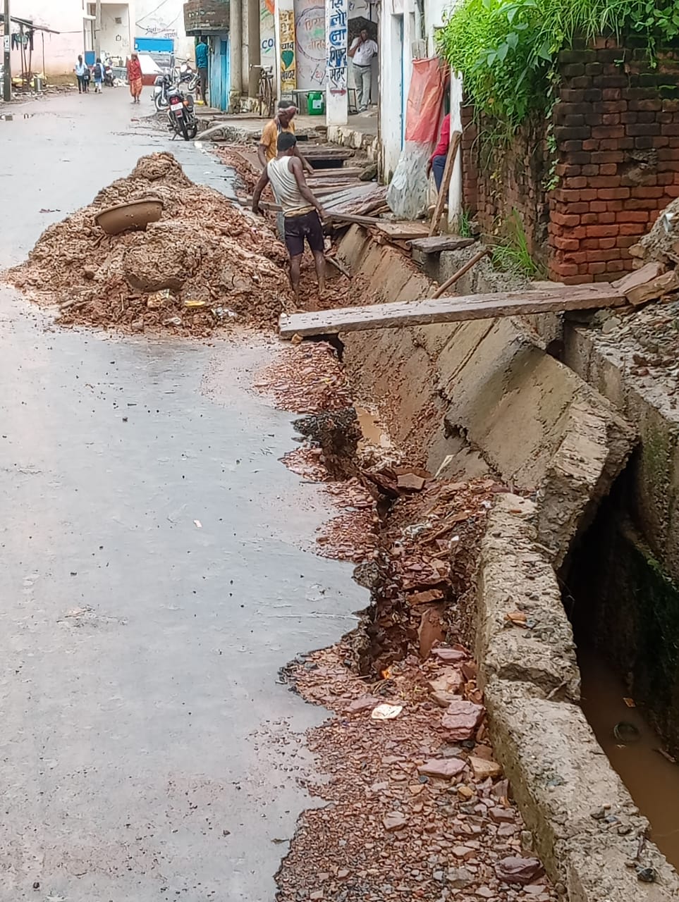 : *तेजगढ़ ग्राम पंचायत में घटिया निर्माण की भेंट चढ़ गया लाखों का नाला*