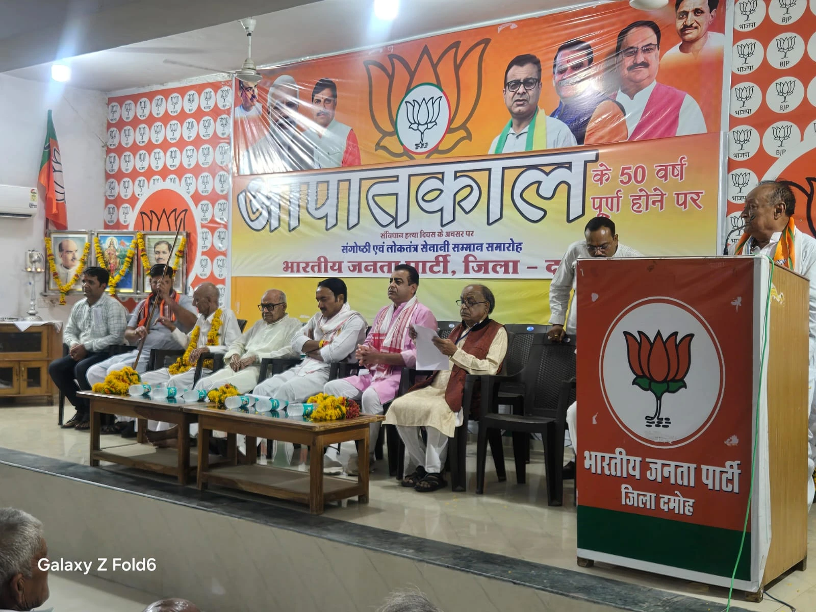जिलाध्यक्ष श्याम शिवहरे ने कहा कि आज से 50 वर्ष पूर्व 1975 में एक विदेशी का घाटी जिसमें तत्कालीन कांग्रेस सरकार ने देश में आपातकाल लगाया। आज हमारे बीच हमारे वरिष्ठ भारतीय जनता पार्टी के आधार स्तंभ हमारे वरिष्ठ जिन्होंने अपने रक्त से भाजपा को सींचा है वह हमारे बीच उपस्थित हैं। आज वह काला दिवस है जिसे हम 50 वर्षों से याद कर मना रहें हैं। 1947 में जब देश स्वतंत्र हुआ तो इस सोच के साथ लोकतंत्र की स्थापना हुई थी सभी वर्गों को स्वतंत्र विचारों, रहन-सहन खान पान, धार्मिक, अभिव्यक्ति की स्वतंत्रता मिलेगी लेकिन 1975 में देश में आपातकाल लगाकर लोकतंत्र की तीन स्तंभों पर पाबंदी लगा दी गई। लोगों पर शारीरिक और मानसिक प्रताड़ना दी गई। जिसकी कल्पना करना भी मुश्किल है आज हमारे बीच ऐसे ही वह लोग बैठे हुए हैं जिन्होंने इस पीड़ा को सहा हैं आज यह कल दिन मनाना इसलिए भी जरूरी है क्योंकि आपातकाल जैसी विभीषिका लगाने वाली कांग्रेस आज भी है कांग्रेस के लोग तो बदल गए लेकिन सोच आज भी वही है तानाशाही वाली। लोकतंत्र सेनानियों के इस संघर्ष को आसानी से बुलाया नहीं जा सकता। जब तक आपातकाल लगाने वाली सोच है तब तक भारत सुरक्षित नहीं है। प्रधानमंत्री इंदिरा गांधी के समय भी उन्हें सलाह देने वाले पाश्चात्य संस्कृति से प्रेरित थे और आज भी वर्तमान कांग्रेस नेतृत्व को सलाह देने के लिए आज भी पाश्चात्य संस्कृति से प्रेरित लोग हैं। नई पीढ़ी को यह बताने के लिए की आपातकाल जैसी विभीषिका लगाने वाली सोच आज भी है और ऐसे दिन फिर से आ सकते है इसलिए यह काला दिवस याद रखना जरूरी है